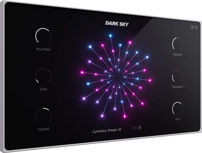 Blending a unique atmosphere with granular delay, Dark Sky can turn any audio signal into something special.