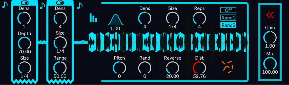 Generate stuttered repetitions that can evolve dynamically, with random pitch, filter, and playback variations for a lively, ever-changing soundscape.
