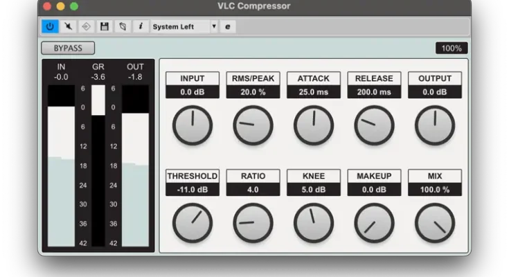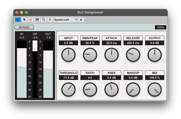 Port of VLC Compressor, a dynamic range compressor ported from plugins from LADSPA SWH