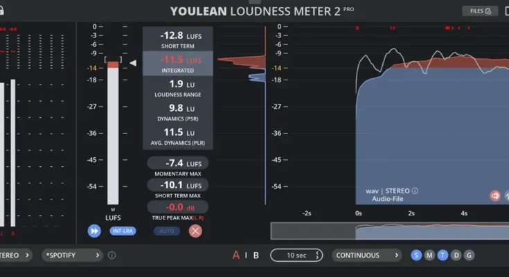 Youlean Loudness Meter helps you find the true perceived loudness of your audio and prepares it for TV or streaming services release.