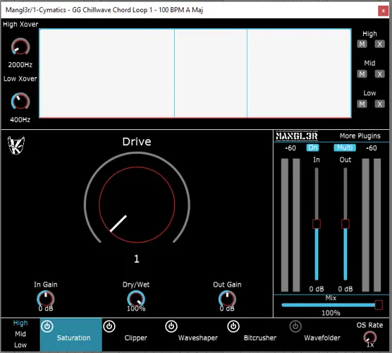 The most important, and powerful feature? Band Slitting. Split your track into three bands: Low, Medium, High. Each band has it’s own distortion processing that you can customize in infinite ways.