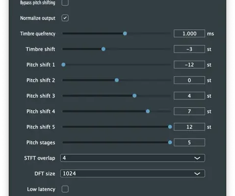 The stftPitchShiftPlugin features poly pitch and timbre shifting simultaneously and in real-time. It’s completely based on the stftPitchShift library, which also provides a Python interface and useful command line tools.