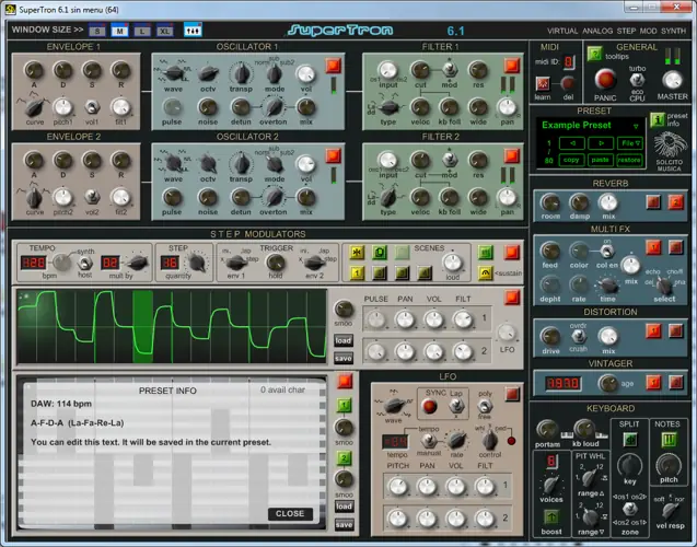 Available as VSTi and Stand Alone application. Both include a Tutorial Preset Bank to learn all about this synth.