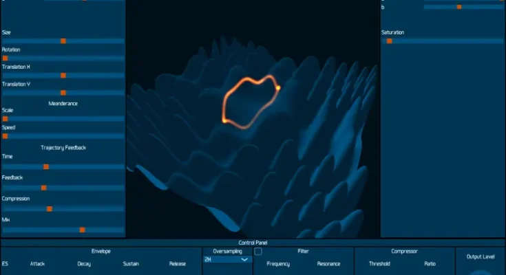 Trajectories feature a two-dimensional recursive feedback loop to create musically useful time-modulated shapes.