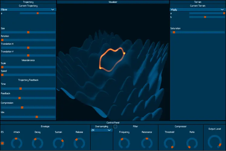 Both Terrains and Trajectories can be modified and automated at the audio rate.
