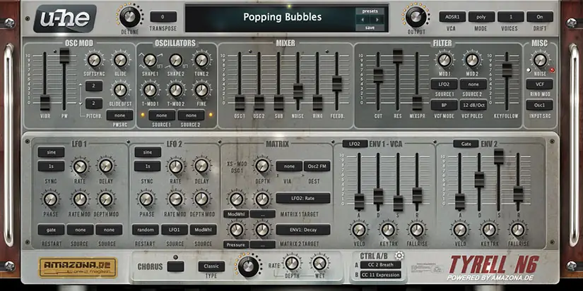 TyrellN6 is a compact, sporty synth. Based on concepts and ideas for a hardware synth: a few modules, novel features, analogue sound and low-cost.