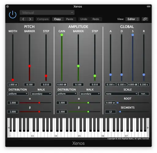 Xenos is a virtual instrument plug-in that implements and extends the Dynamic Stochastic Synthesis (DSS) algorithm invented by Iannis Xenakis. Programmed in C++ with the JUCE framework, Xenos is open-source, cross-platform, and can be built in a number of plug-in formats.