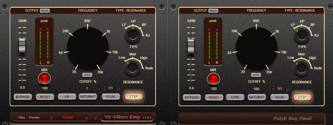 YS – Filters Easy Dual_ Audio filtering plugin. The plugin has simple functions and is easy to configure. Four types of filter Low Pass, High Pass, Band Pass, Band Reject to choose from. The resonance regulator can be selected step-by-step 4 fixed settings or smooth.