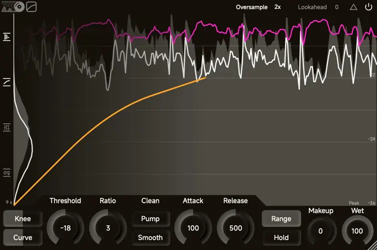 This provides lots of possibilities for sound shaping with frequency-specific compression. Make the plugin react more or less to certain parts of your sound without introducing unnecessary artifacts.